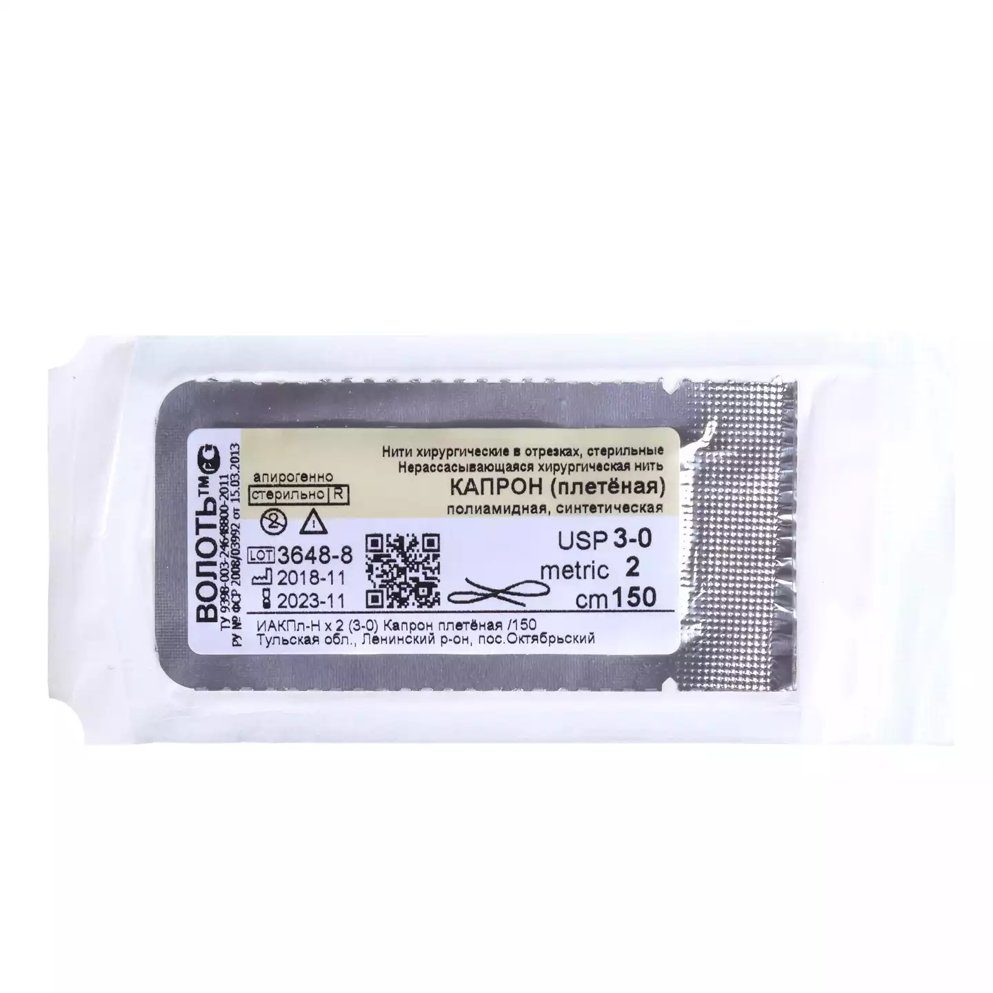 Капрон плетеный ИАКПл-Н х2 (3/0), без иглы, длина 150см, Волоть (РОССИЯ)