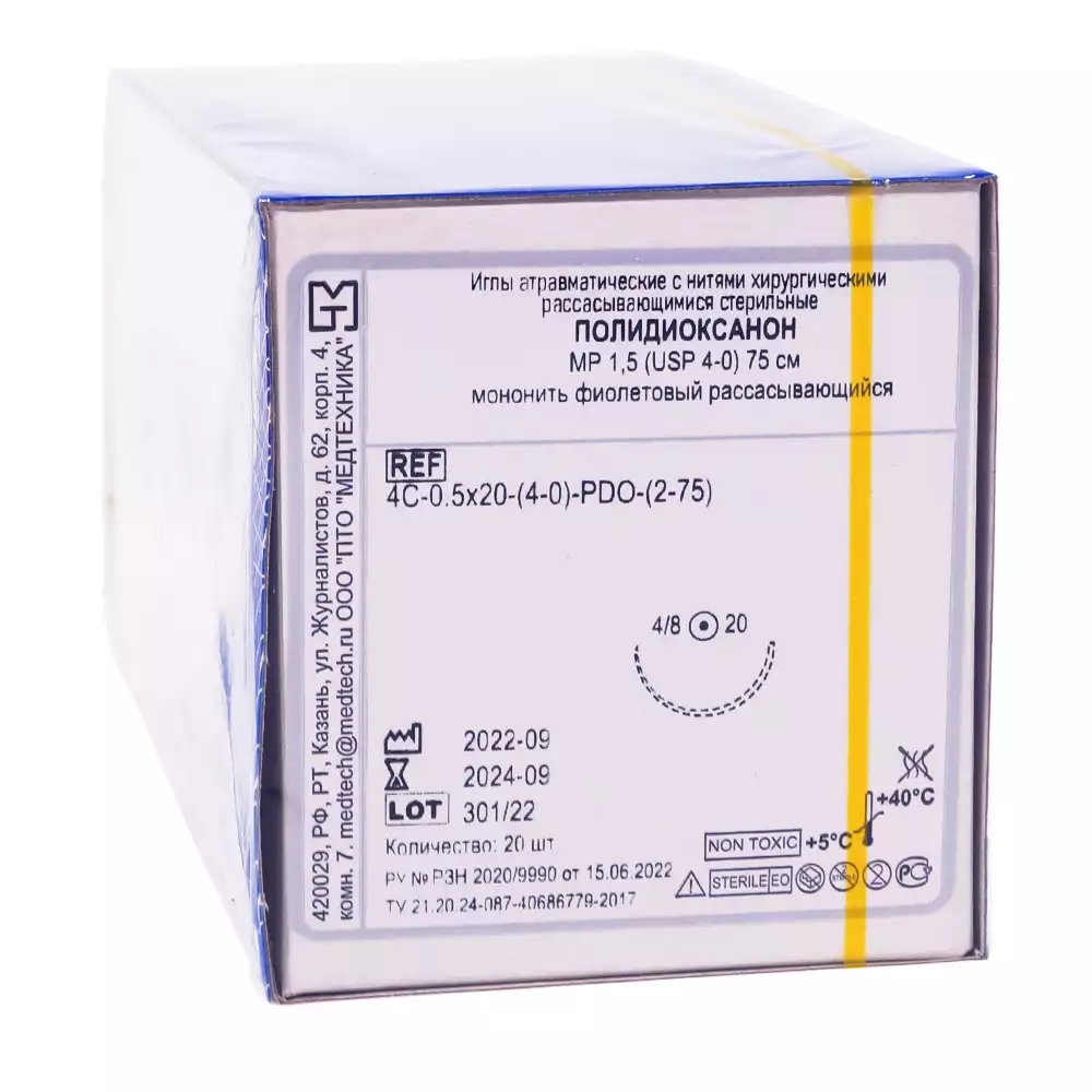 Поликол 1/0 (4,0), длина нити 90см, игла 1/2 круглая колющая тяжелая 45мм с продольными насечками, упаковка 36шт, SPL2060SR, Peters Surgical (ИНДИЯ)