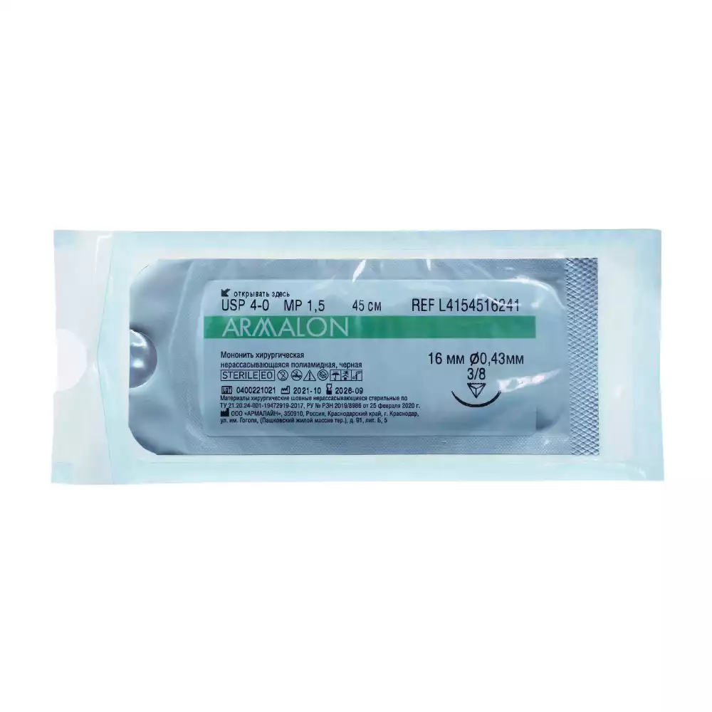 МОНОФИЛ мононить полипропиленовая окрашенная (синяя) USP5-0 (МР1) длина 75 см, игла HR-15, Линтекс (РОССИЯ)