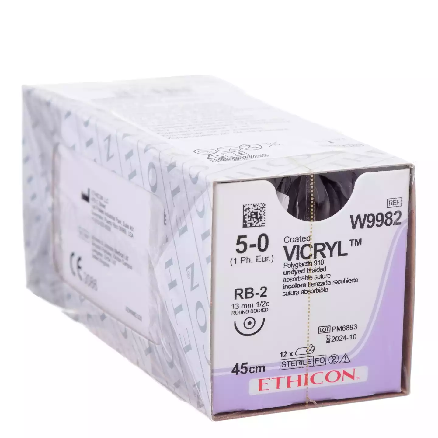 Викрил М1 (5/0) длина 45см, игла колющая RB-2, 1/2 окружности, 13мм, неокрашенный, упаковка 12шт, W9982, ETHICON