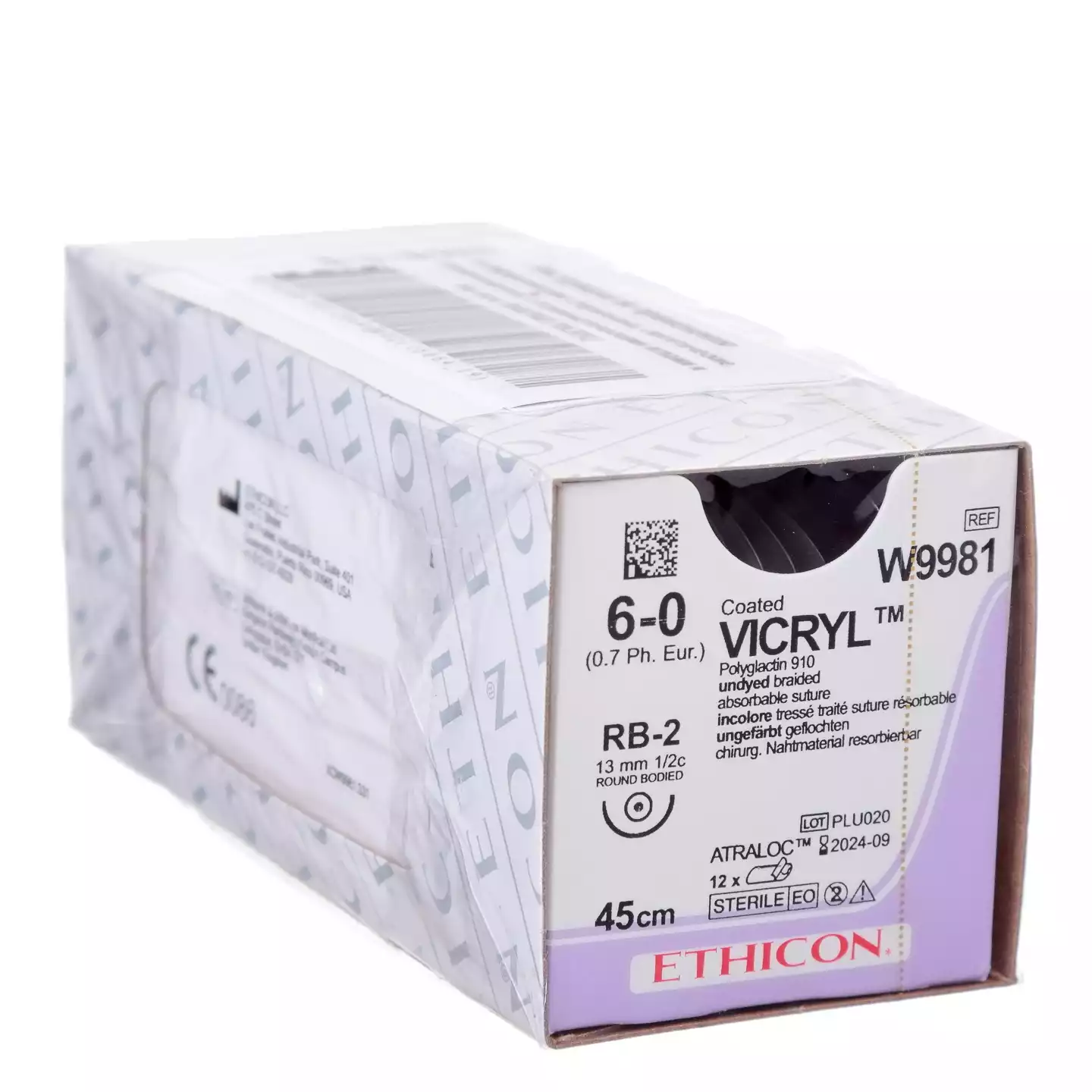 Викрил 4/0, длина 75см, игла колющая RB-1 Plus 1/2 окружности 17 мм, фиолетовый, упаковка 12шт, W9106, ETHICON
