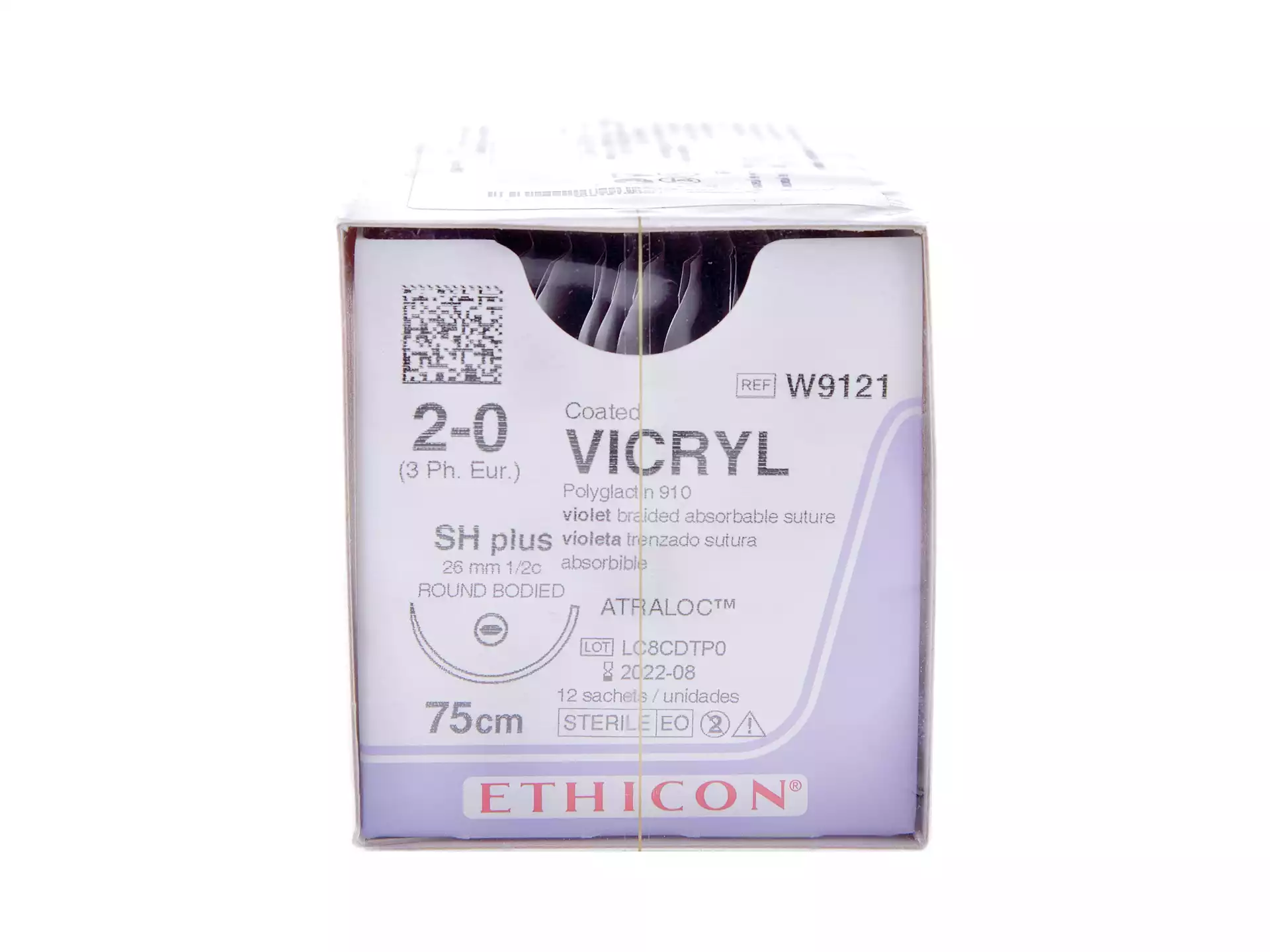 Викрил М3 (2/0) длина 90см, игла колющая MH, 1/2 окружности 36 мм, фиолетовый, упаковка 12шт, W9440, ETHICON