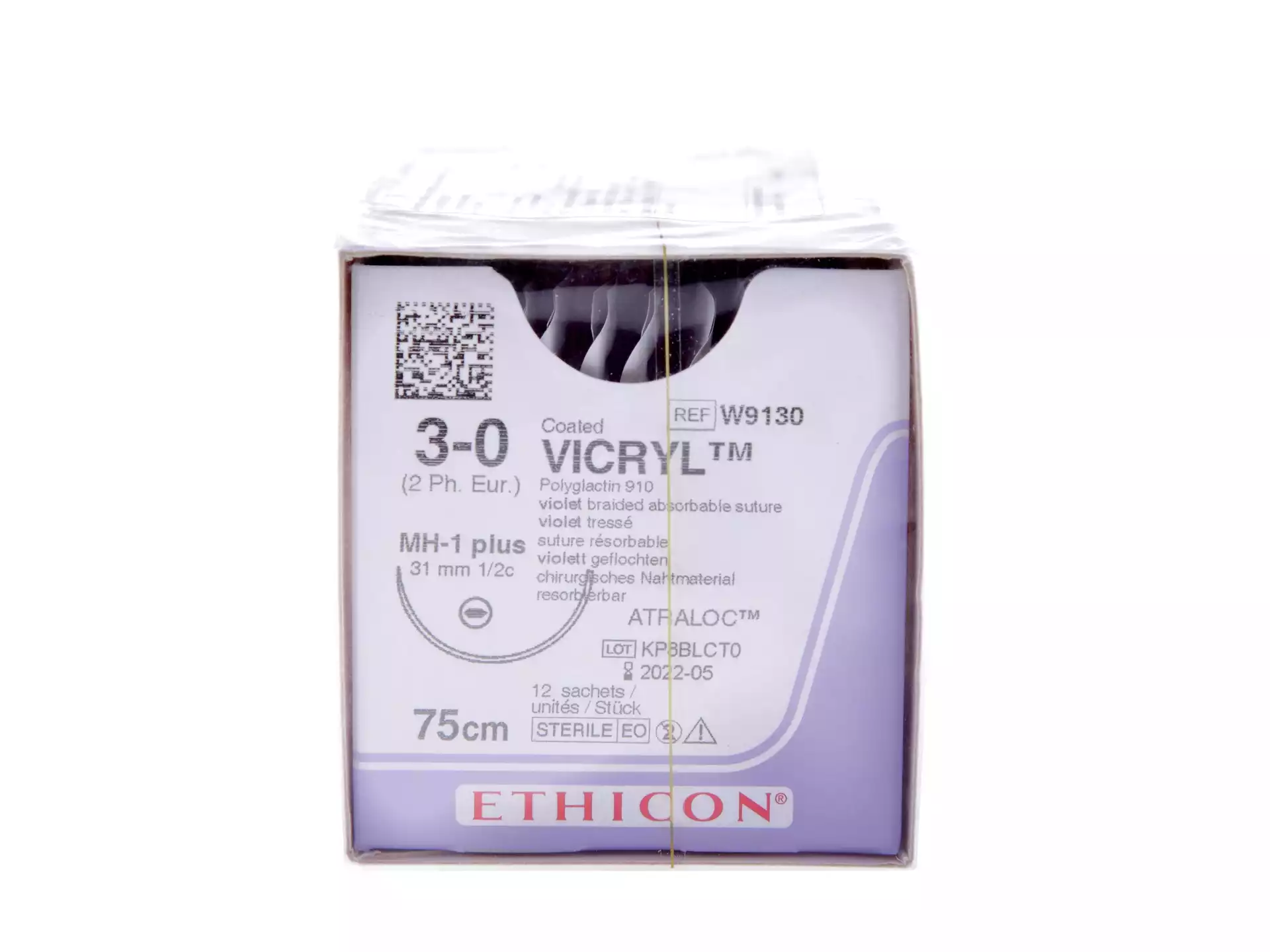 Викрил М3.5 (0) длина 75см, игла колющая MH PLUS 1/2 окружности 36мм, фиолетовый, упаковка 12шт, W9141, ETHICON