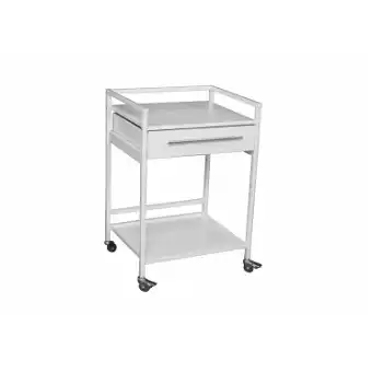 Столик МСК-548 манипуляционный передвижной метал. с двумя полками и выдвижным ящиком, колеса резиновые, размер 645х425х920мм, Медстальконструкция (РОССИЯ)