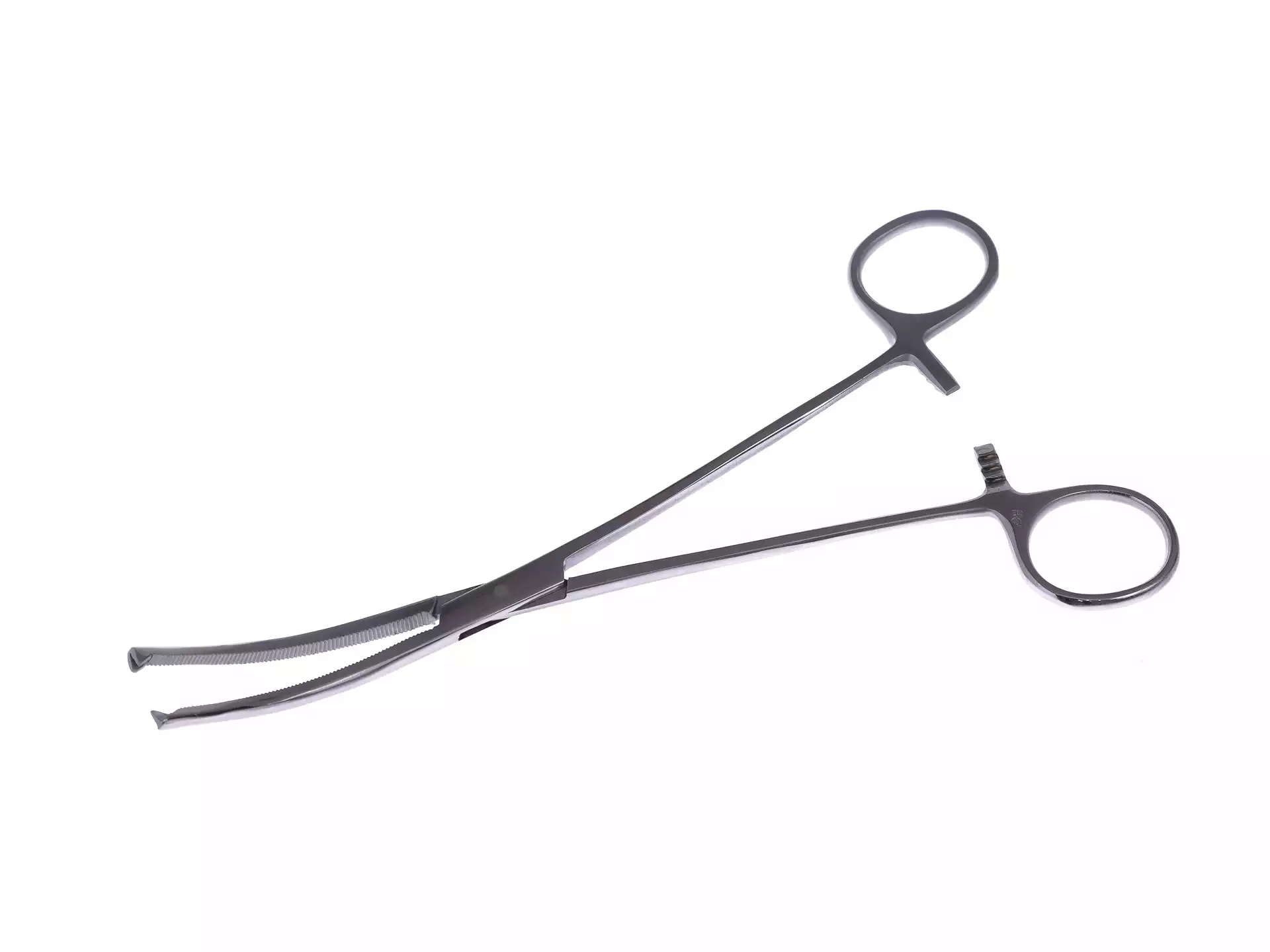 Зажим 17-385 кровоостанавливающий, 1*2 зубый, изогнутый №3, длина 200мм, многоразовый, аналог З-31-1Sammar International (ПАКИСТАН)
