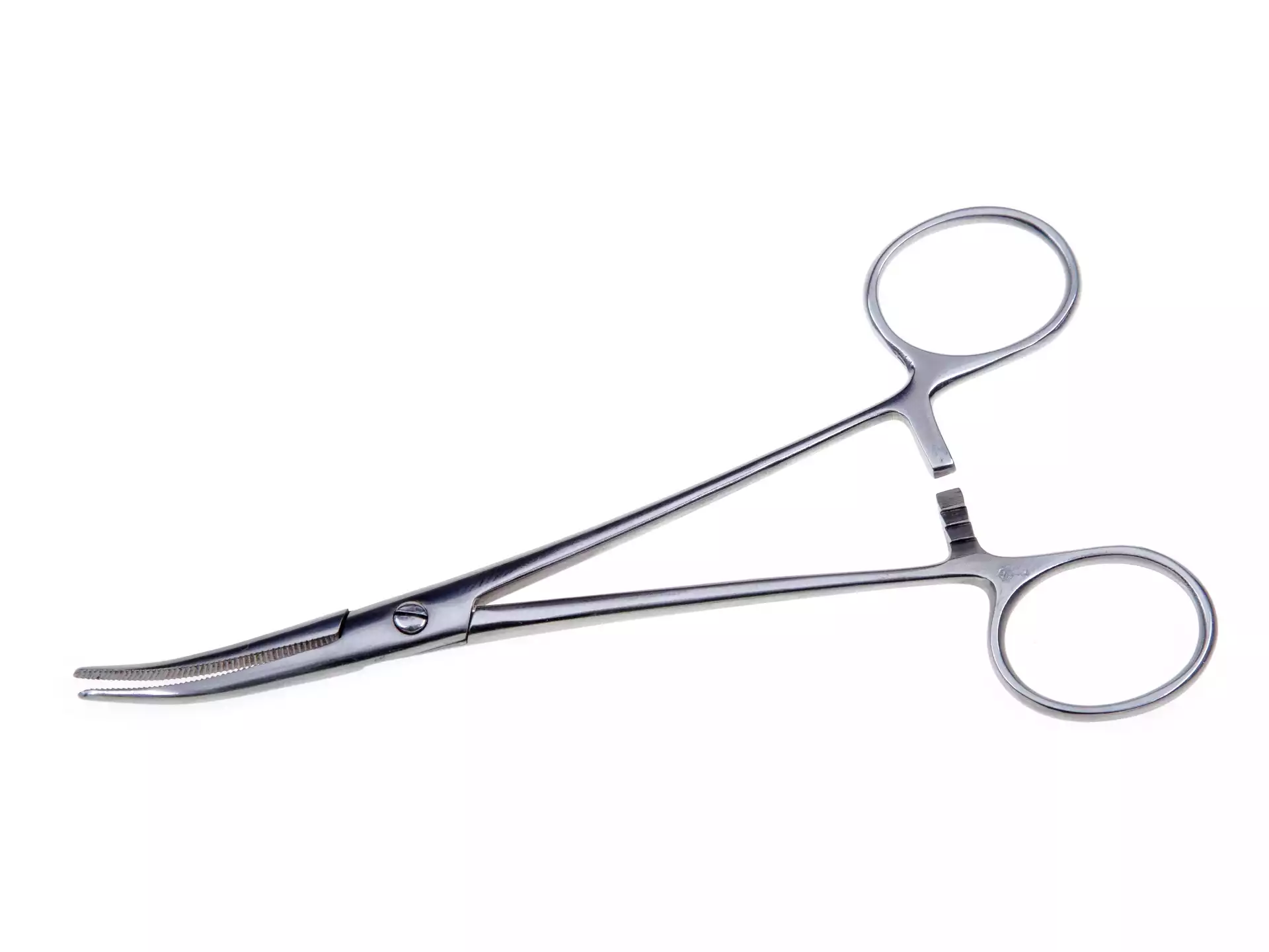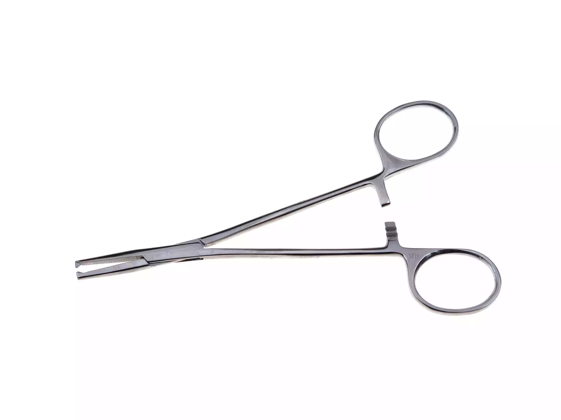Зажим К-17-142, кровоостанавливающий, тип Москит, изогнутый для новорожденных, длина 125мм, многоразовый, аналог З-121Khokhar International (ПАКИСТАН)