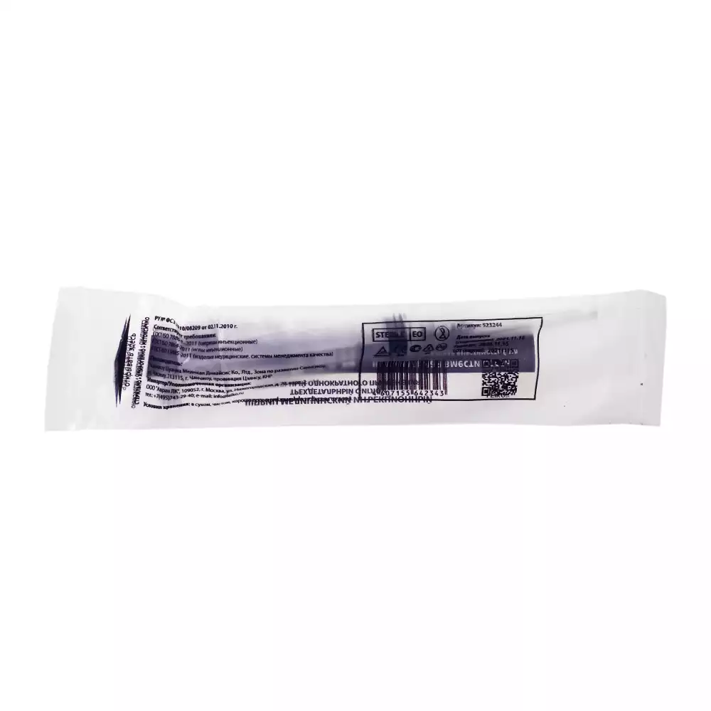 Игла надета на шприц: исключена возможность загрязнения наконечника цилиндра, сокращено количество дополнительных манипуляций при проведении инъекции.