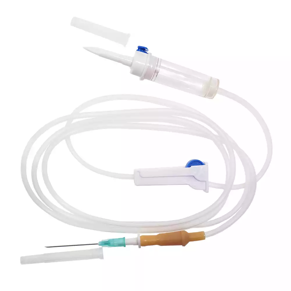 - длинная гибкая труба с точным регулятором течения участка из латекса, позволяющего делать дополнительные инъекции во время вливания;
