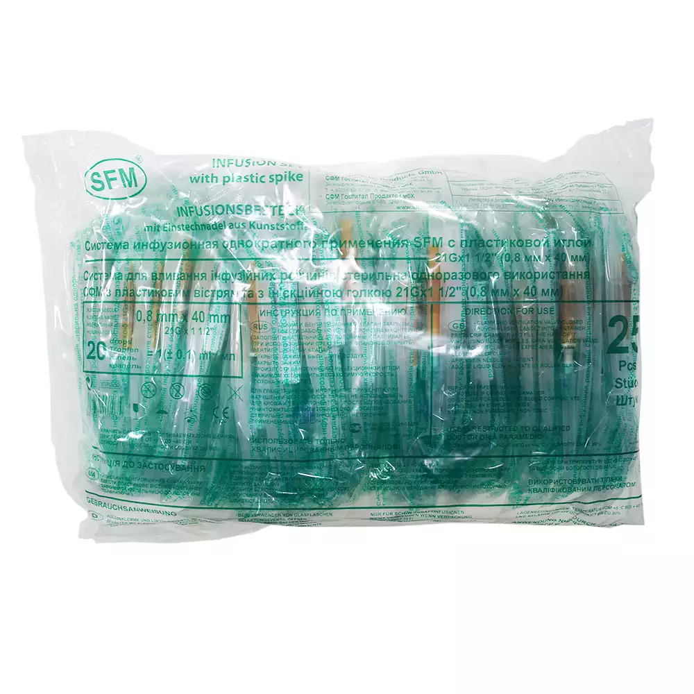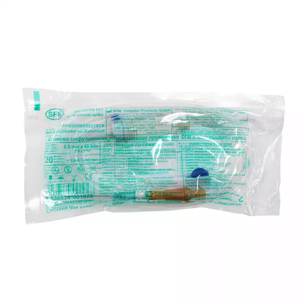 Система инфузионная для переливания растворов 21G игла 0,8*40, пластиковый шип, длина 150см, одноразовая, стерильная